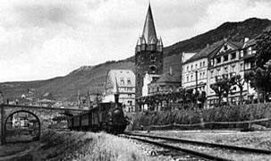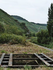 The railway played an important role in the development of the Moselle wine-industry. It was shut down in the sixties, like so many other railways, with the last track, Trier-Neumagen, being closed on 31 January 1968.